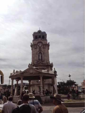 La journée suivante a été la visite de la ville de Patchuca, capitale de l'état Hidalgo. Nous avons vu une peinture sur le sol, fait de 6 millions de petites mosaïques colorées et qui fait 400 mètres x 80 mètres, elle est dedié aux femmes, vraiment impressionnant ! La visite de l'église qui date de 1750 a été intéressante,. Au "zocalo" (place centrale), la tour surmontée de 4 horloges valait la peine de monter jusqu'en haut, Yvon l'a fait, pas moi. Le guide avait eu une permission spéciale car c'est fermé aux gens. Un petit tour chez Burger King pour diner, différent des mets mexicains car c'est pareil comme chez nous. En après-midi, nous avons pris nos VR et sommes allés coucher sur la montagne où est installé le Cristo Rey, grande statue du Christ qui protège la ville. En soirée, nous avons eu un souper avec spectacle de danses locales.